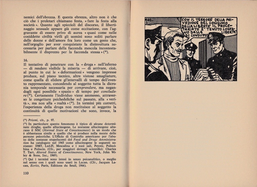 Descrizione: copertina illustrata con composizione grafica in tondo del titolo in rosso su fondo bianco, tre immagini detournate dell'autore e 1 illustrazione fotografica in bianco e nero n.t. Prima edizione.