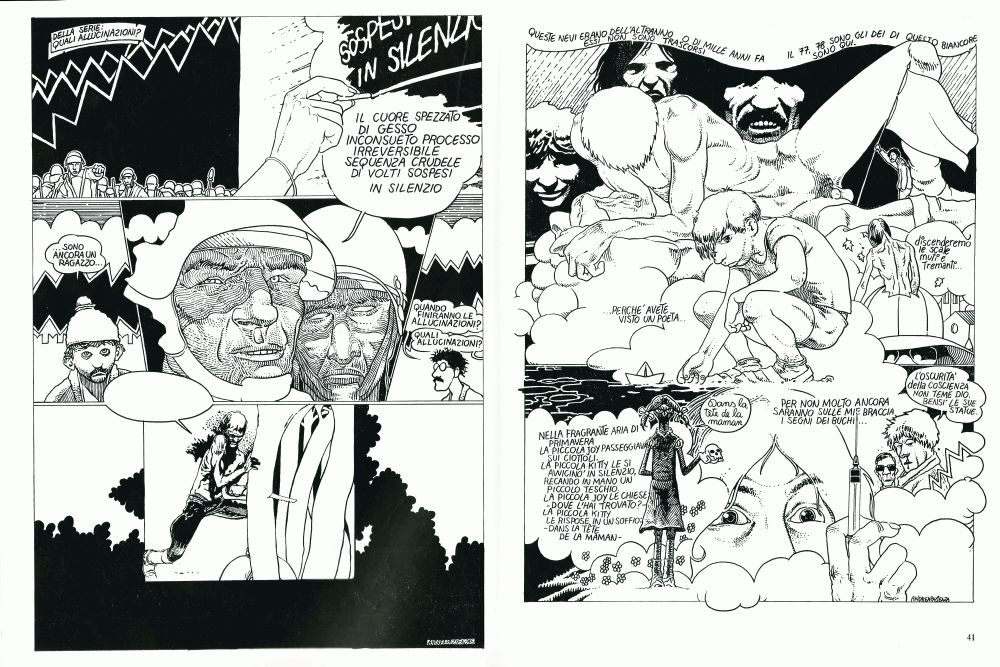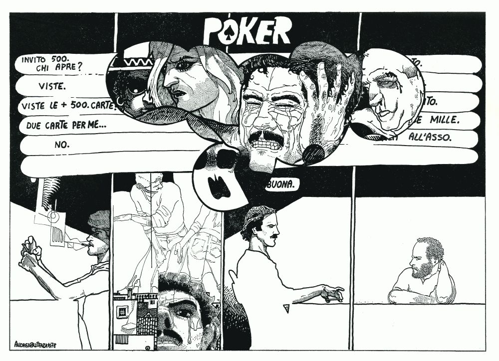 Andrea Pazienza partecipa a questo numero con due disegni in nero a pag. 38 e pag. 39; e due storie in bianco e nero: «Della serie: quali allucinazioni?» (pp. 40-41) e «Poker» (pag. 42).