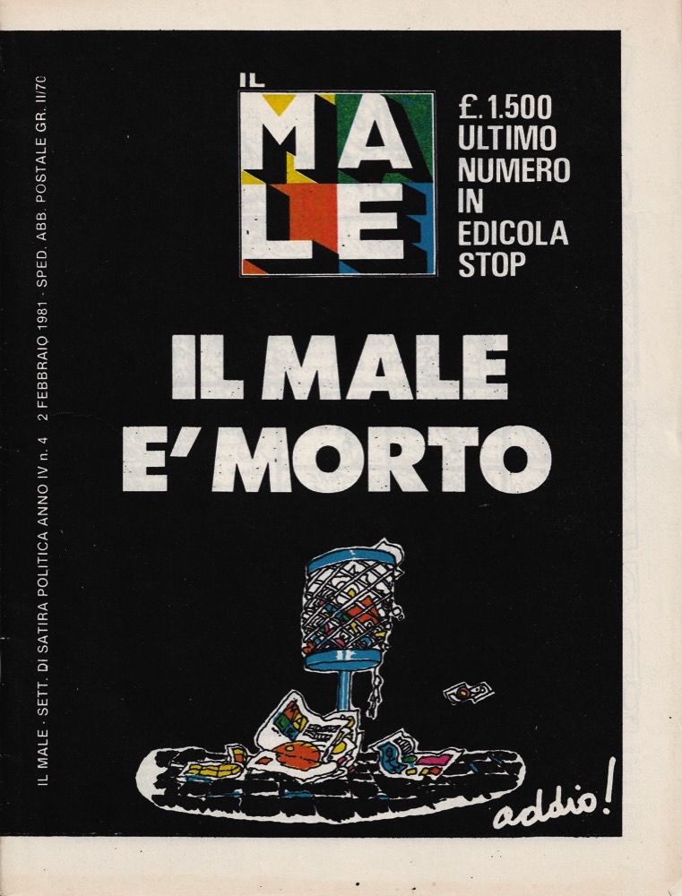 Il Male - Anno IV Prima serie n. 4. Il Male è morto - Ultimo numero in edicola e stop