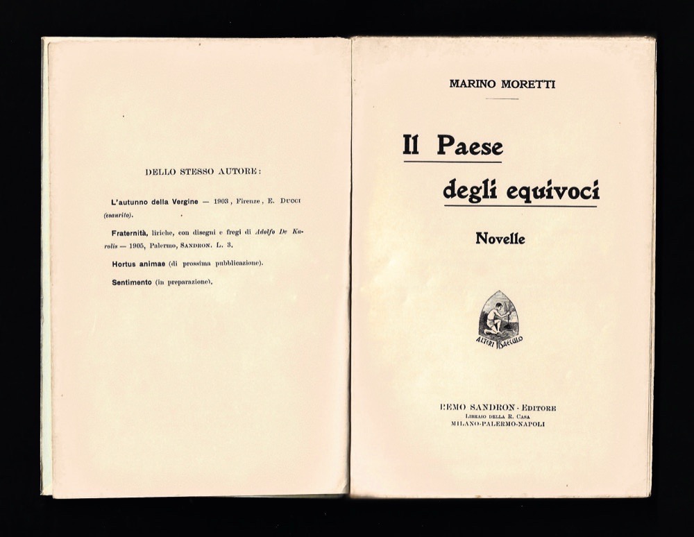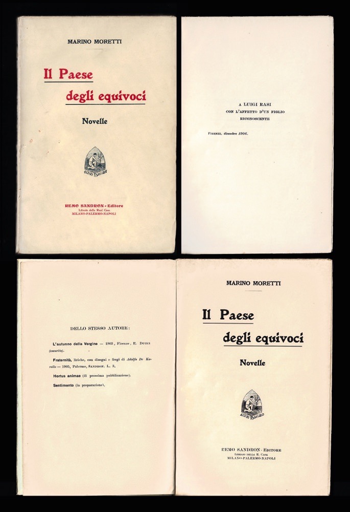 Descrizione: copertina con titoli in nero e rosso. Tredici racconti ambientati in Romagna, che tratteggiano la vita di provincia tra cittadine e borgate di cui Cesenatico, città natale dell'autore, è la più rappresentativa. Dedicatoria a stampa a Luigi Rasi (Ravenna 1852 - Milano 1918): "Con l'affetto di un figlio riconoscente" datata "Firenze, dicembre 1906". Prima opera narrativa morettiana. Esemplare in ottimo stato di conservazione. Prima edizione.