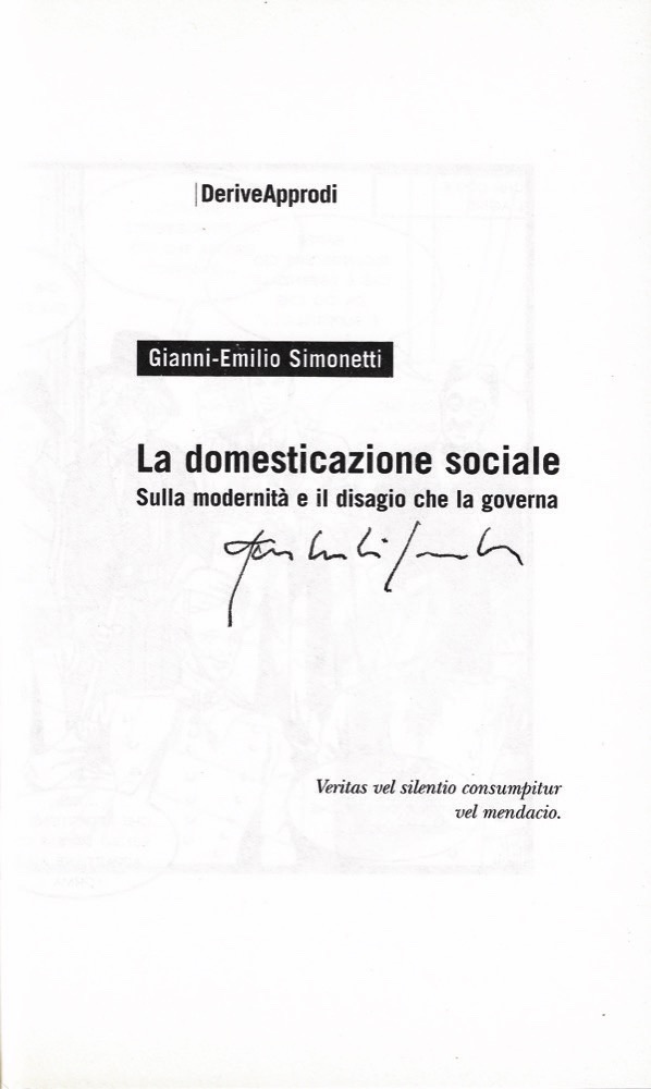 "La «domesticazione sociale» è l'altro nome di quelle pratiche di dominio che sono all'origine di 'obbedienza, consenso, pace sociale. Non ideologie, forme di cultura o teorie, ma vere e proprie forze che plasmano la nostra vita, modellano i nostri comportamenti e vincolano il nostro comune. La «domesticazione sociale» è all'origine di quella sudditanza vissuta con disarmante fatalismo, in virtù della quale di volta in volta ci troviamo a rivestire gli abiti di un popolo di consumatori, produttori, guerrafondai, utenti, elettori... La «domesticazione sociale» è la misura di quella distanza tra i molti che obbediscono e i pochi che comandano... Capire le ragioni di ciò che produce la nostra alienazione nella forma della merce, nella forma dello spettacolo e nella forma del consenso è il presupposto per immaginare una possibile ribellione a questo presente e al prossimo futuro" (dal testo in quarta di copertina).