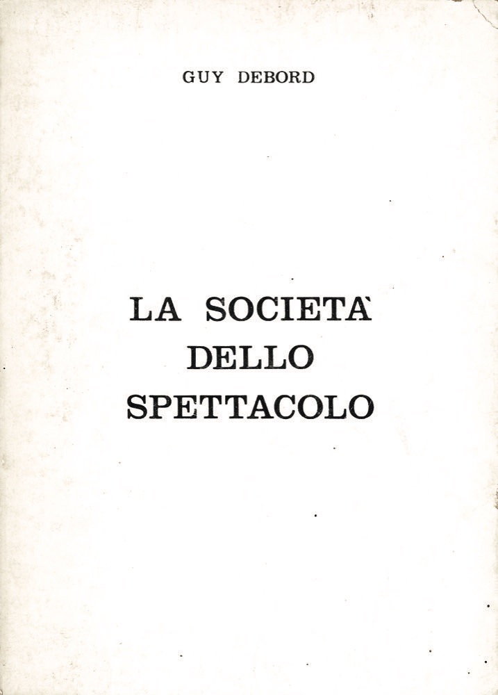 "1. Tutta la vita delle società in cui regnano le moderne condizioni di produzione si presenta come un'immensa accumulazione di spettacoli. Tutto ciò che era direttamente vissuto si è allontanato in una rappresentazione" (pag. 5). "4. Lo spettacolo non è un insieme di immagini, ma un rapporto sociale fra persone, mediato da immagini" (pag. 6).