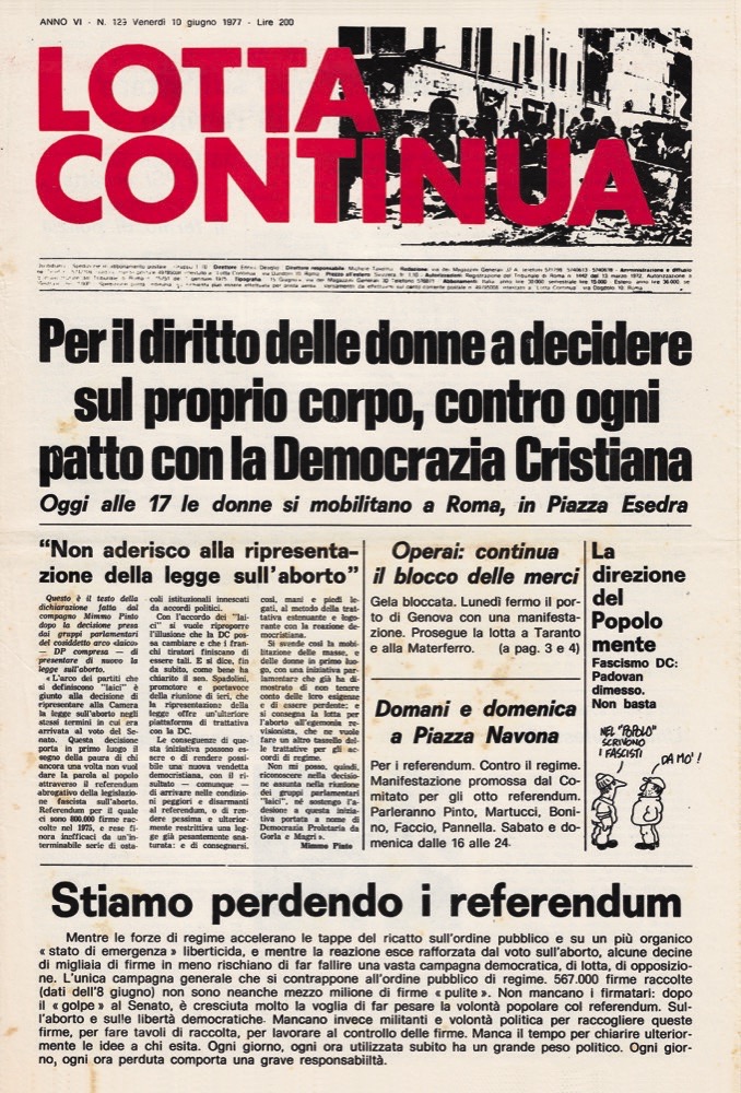 Lotta Continua - n. 129. Per il diritto delle donne a decidere sul proprio corpo, contro ogni patto con la Democrazia Cristiana