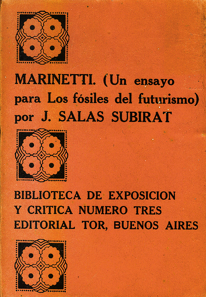 Descrizione: copertina con titoli in nero su fondo mattone. Contiene la traduzione in spagnolo del Primo manifesto futurista. Dedica autografa dell'autore al frontespizio. Edizione originale.
