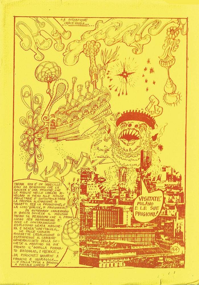 "Taviani non è un imbecille! Egli sa benissimo che la società è una prigione, che le rivolte nelle carceri rivelano in pieno alle masse proletarie e sottoproletarie la propria alienazione di oggetti per la produzione e la loro qualità di prigionieri!! Da guardiano carcerario di questa società il mastino Taviani sa benissimo che il primo luogo per reprimere è dove le contraddizioni esplodono senza maschera e senza spettacolo. Se dalle carceri ristrette l'esplosione si estendesse al carcere generalizzato della società il mastino ha già pronto il gorilla formato Badoglio: Henke. Da Pinochet Ugarte a Franchi e Ingrassia... o dalla fuga a brindisi a piazzale Loreto?" (dalla quarta di copertina).