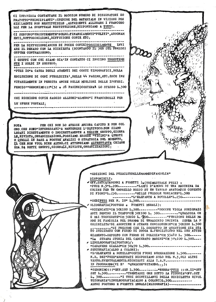 Questo numero precede in ordine di tempo Puzz n. 9 (s.d., ma novembre 1973) e Puzz n. 8 (12 dicembre 1973).