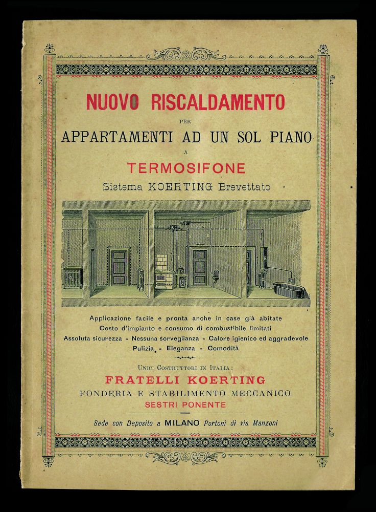 La ditta Koerting, con sede a Milano, era attiva già nel 1854 o prima a Sestri Ponente con il suo stabilimento. E' la prima ditta a produrre in Italia termosifoni, come viene dichiarato nel catalogo dell'Esposizione Generale Italiana di Torino del 1884.
