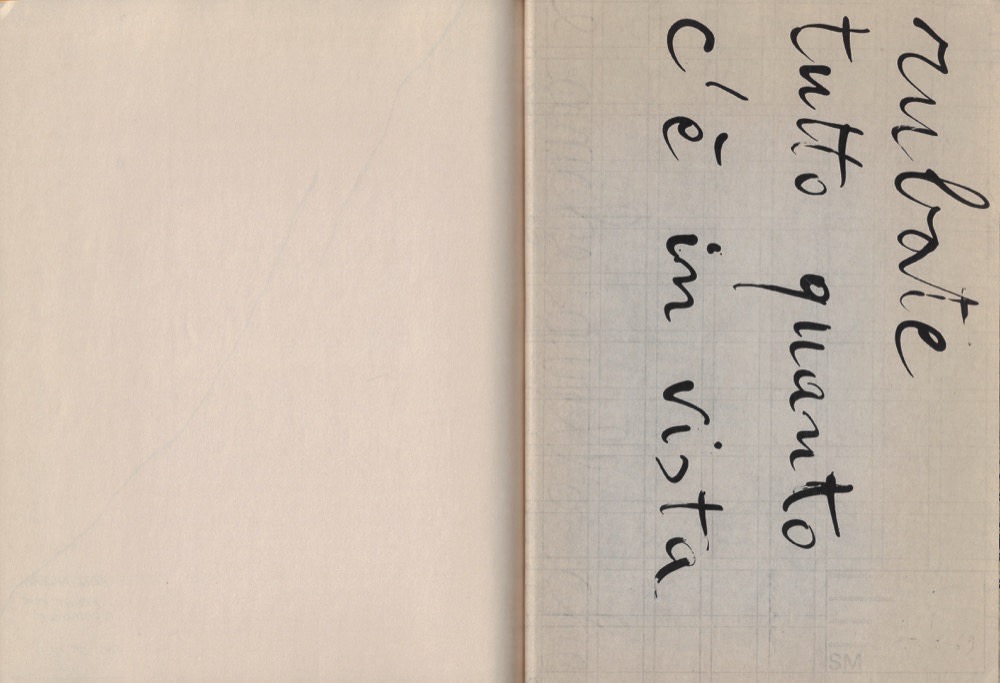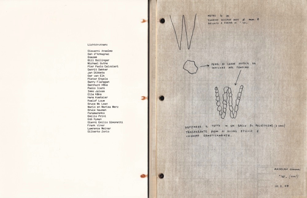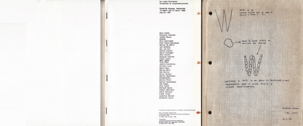 Bibliografia: Giorgio Maffei, «Libri e documenti. Arte Povera 1966-1980», Mantova, Edizioni Corraini, 2007: pag. 208; AA.VV., «’60 ’80 Attitudes / Concepts / Images», Amsterdam, Stedelijk Museum, 1982: pag. 26