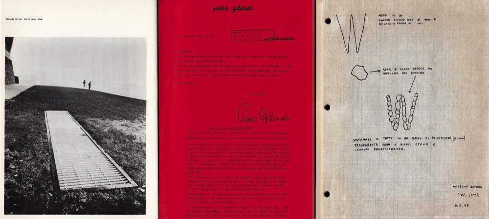 Artisti elencati nella prima parte: Carl Andre, Giovanni Anselmo, Joseph Beuys, Boezem, Bill Bollinger, Pier Paolo Calzolari, Walter De Maria, Jan Dibbets, Ger van Elk, Rafael Ferrer, Barry Flanagan, Mike Heizer, Douglas Houbler, Paolo Icaro, Neil Jenny, Olle Kaks, Jannis Kounellis, Richard Long, Mario Merz, Marisa Merz, Bob Morris, Bruce Nauman, Dennis Oppenheim, Panamarenko, Emilio Prini, Reiner Ruthenbeck, Bob Ryman, Alan Saret, Richard Serra, Robert Smithson, Keith Sonnier, Frank Viner, Lawrence Weiner, Gilberto Zorio.