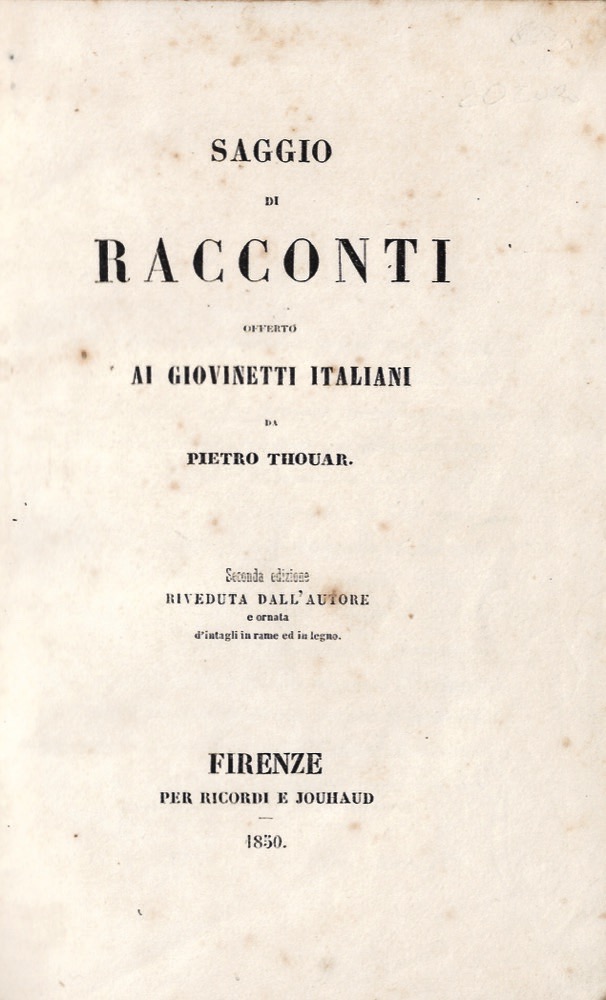 Saggio di racconti offerto ai giovinetti italiani da Pietro Thouar. Seconda edizione riveduta dall'autore e ornata d'intagli in rame e in legno